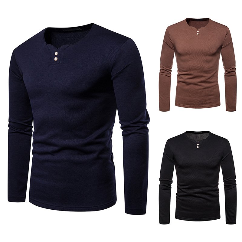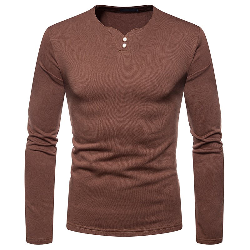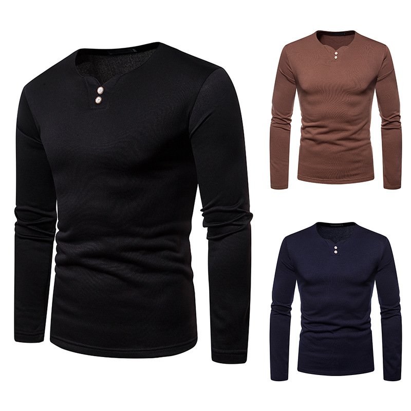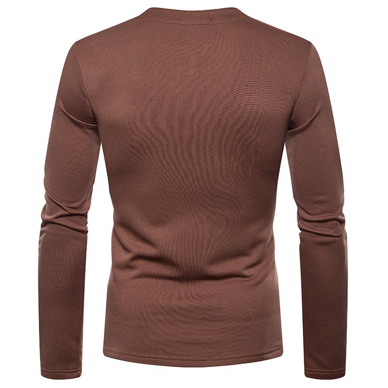 Cross-border men's plus size plus velvet warm henley collar long-sleeved T-shirt bottoming shirt Q129