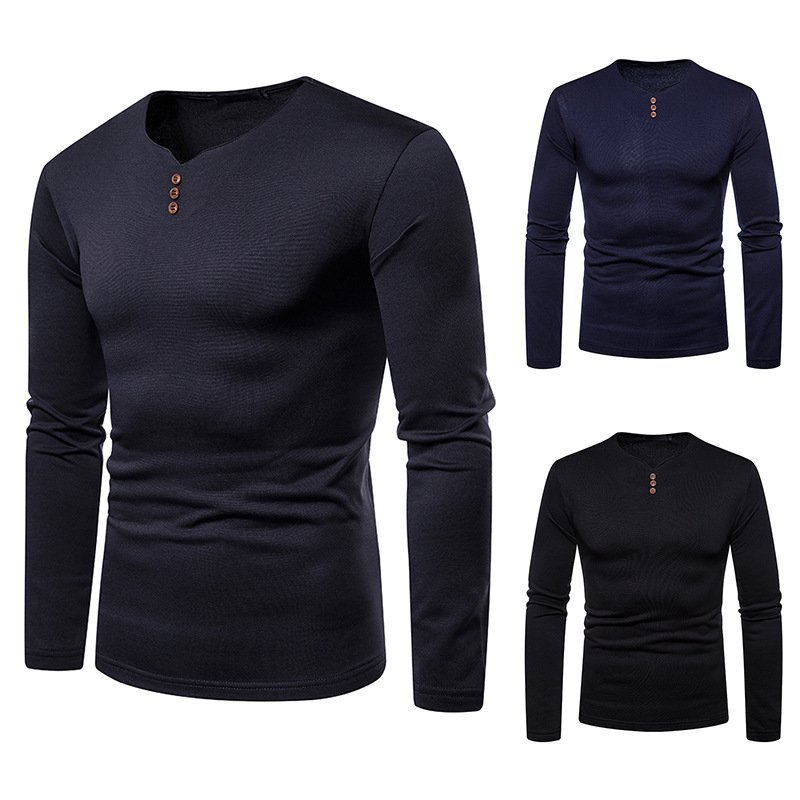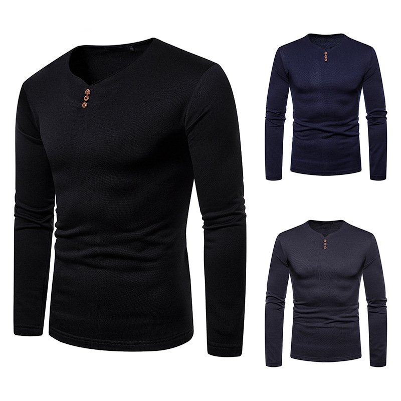 Cross-border men's plus size plus velvet warm V-neck long-sleeved T-shirt base shirt Q131