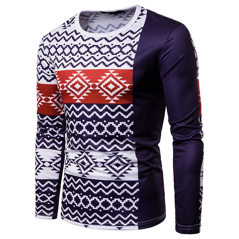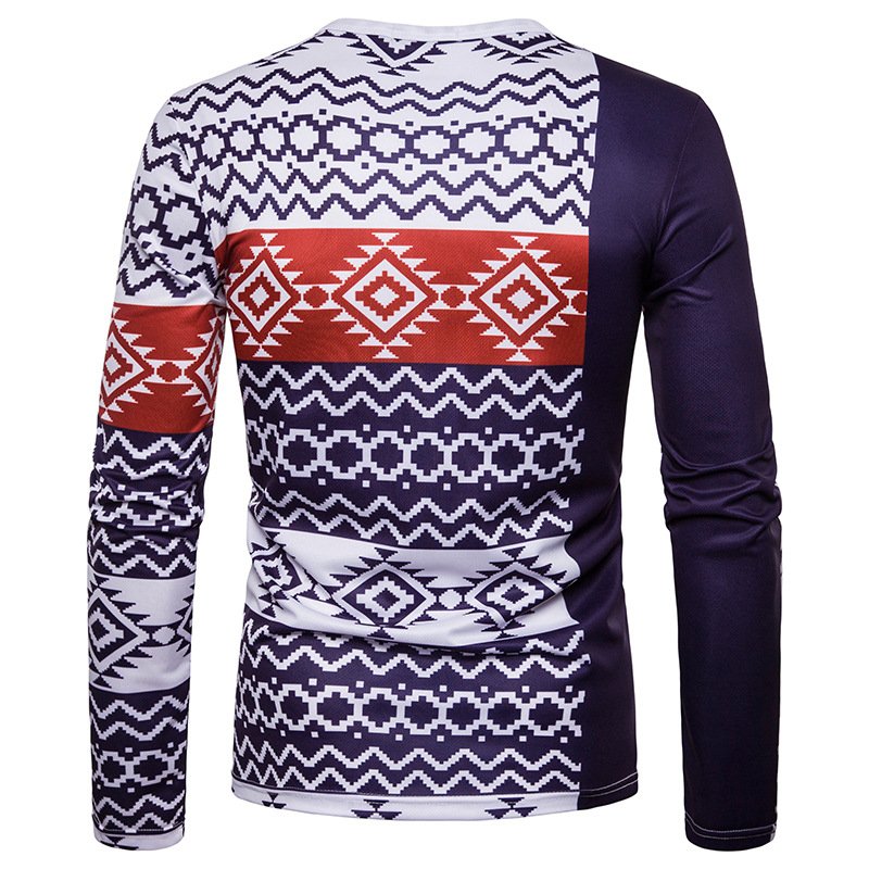 Foreign trade men's fashion wave 3D digital printing round neck long sleeve T-shirt CT444