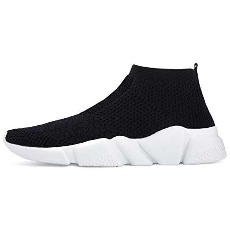 Santiro Men's Running Shoes Breathable Knit Slip On Sneakers Lightweight Athletic Shoes Casual Sports Shoes Black