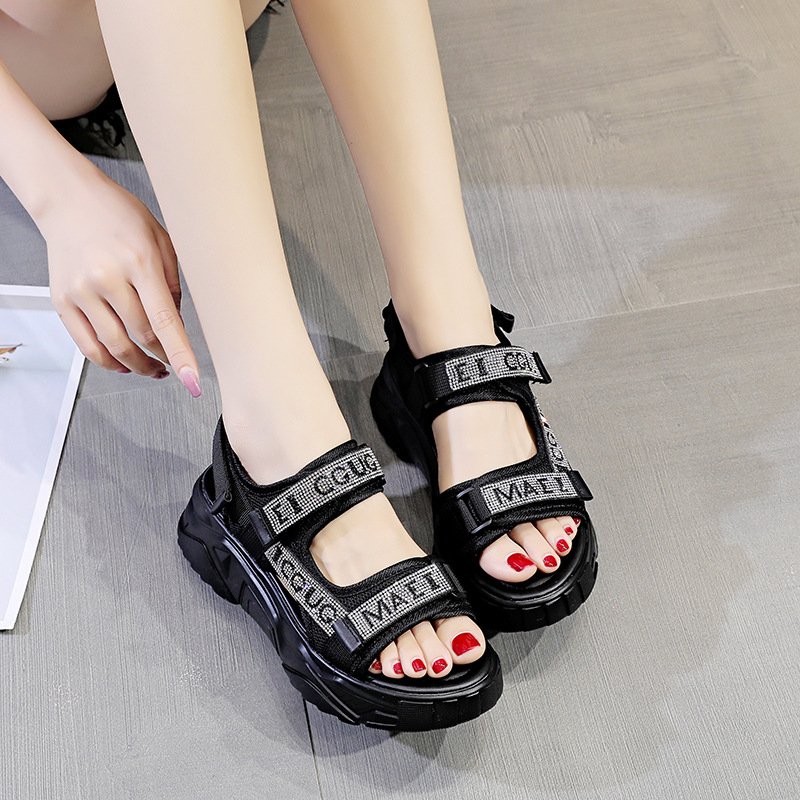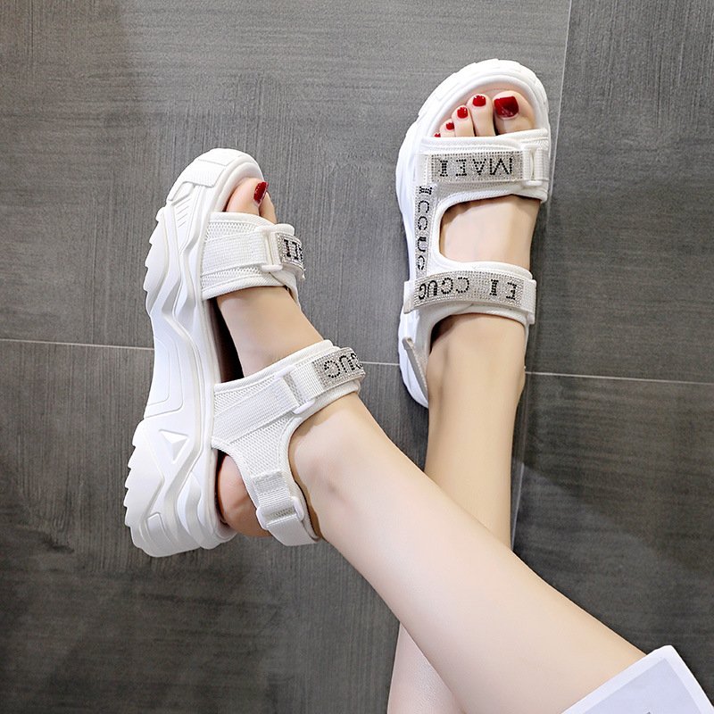 Sandals women's 2021 summer new sports fairy style flat-bottomed fashion beach shoes muffin thick-bottom increased