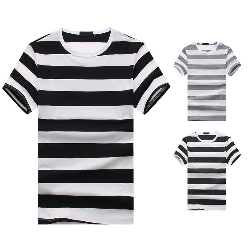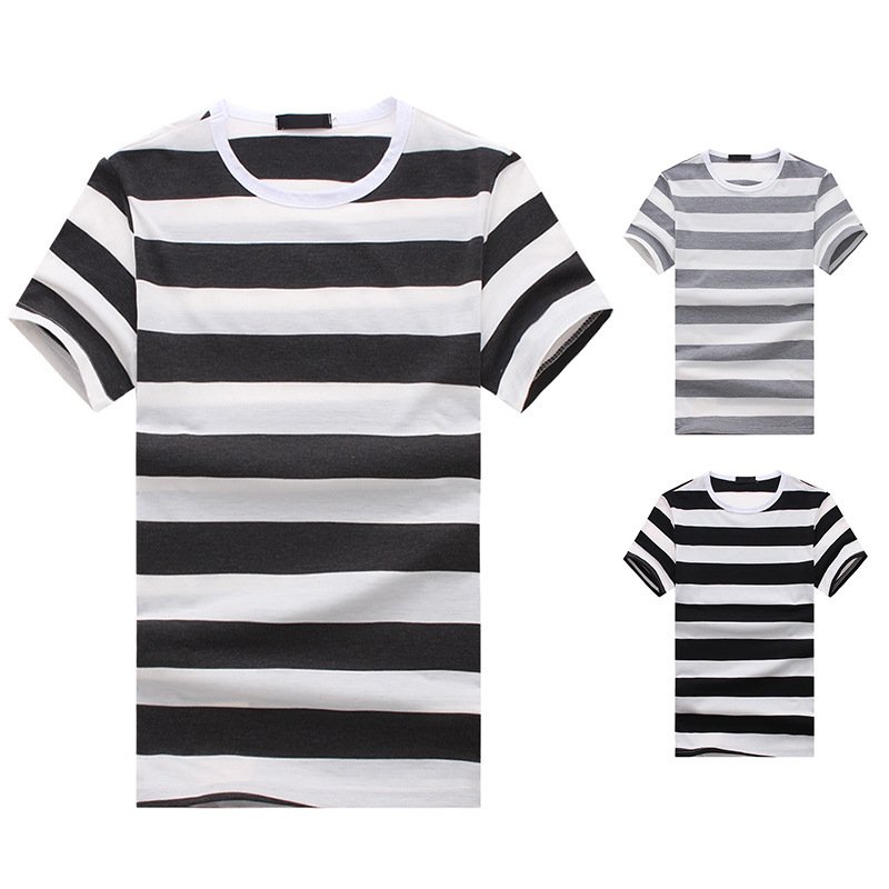 New style flat men's European size thick striped short-sleeved T-shirt Q09