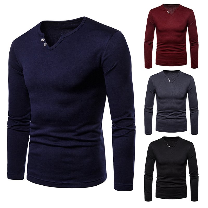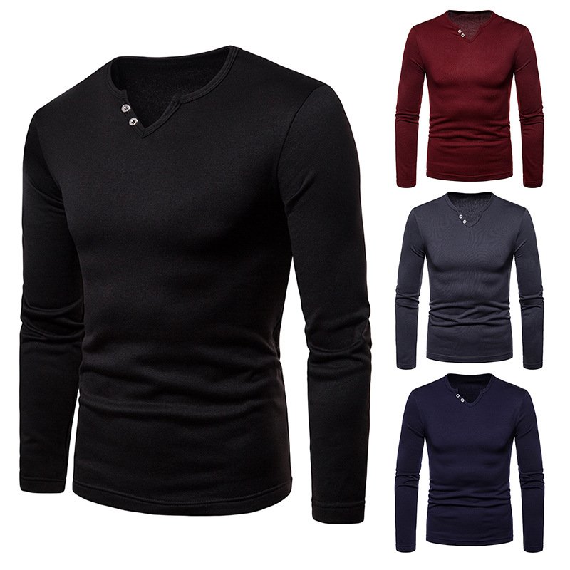 Cross-border men's plus size plus velvet warm V-neck long-sleeved T-shirt base shirt Q123