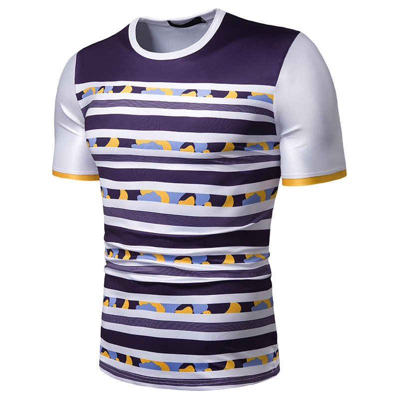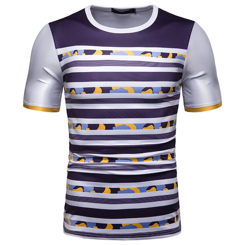 New summer men's short-sleeved T-shirt men's contrast striped slim casual t-shirt TX109