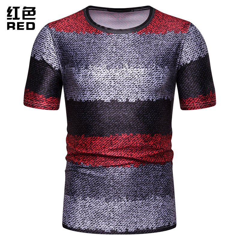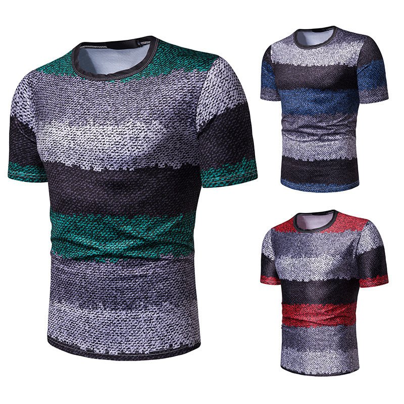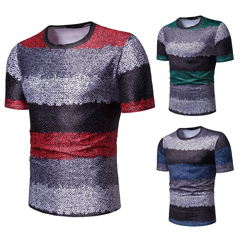 New summer men's short-sleeved T-shirt men's contrast striped slim casual t-shirt TX87
